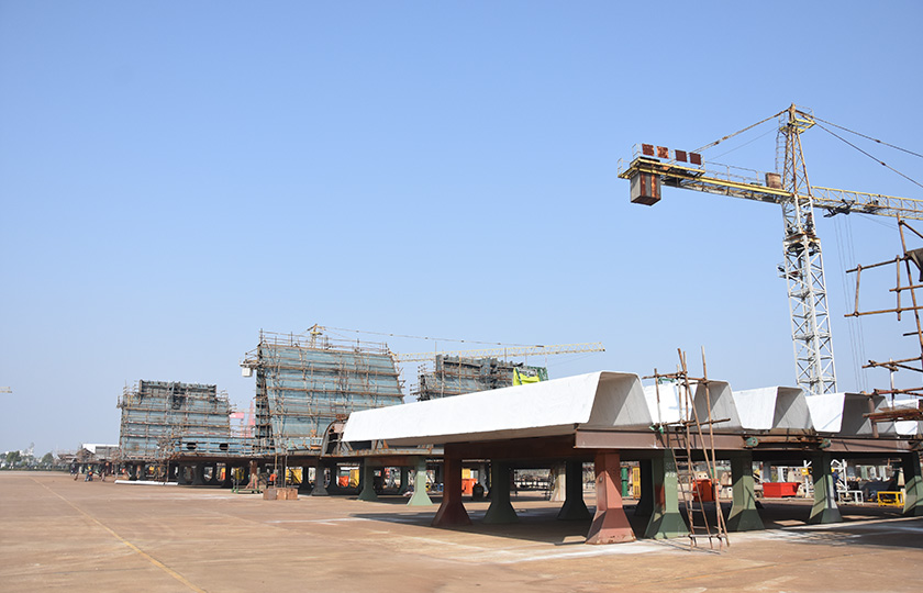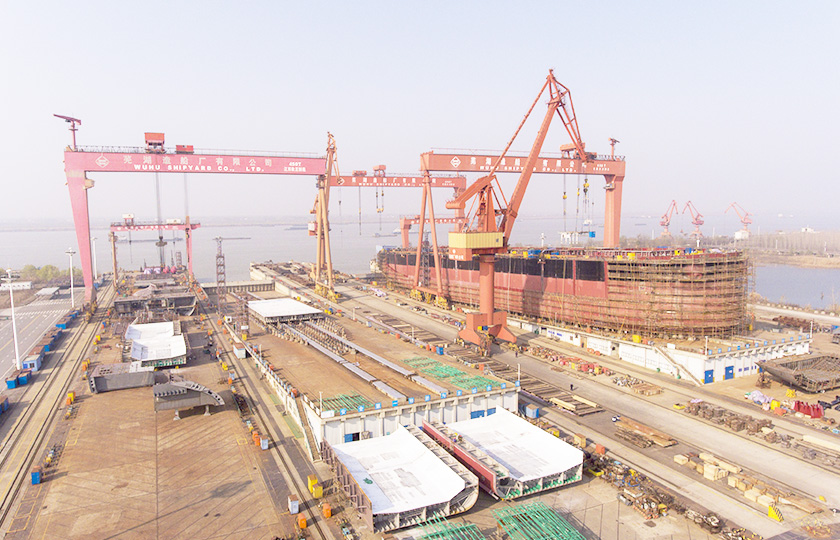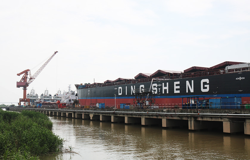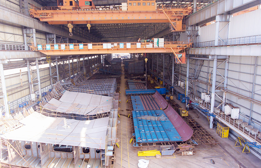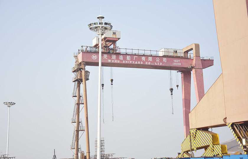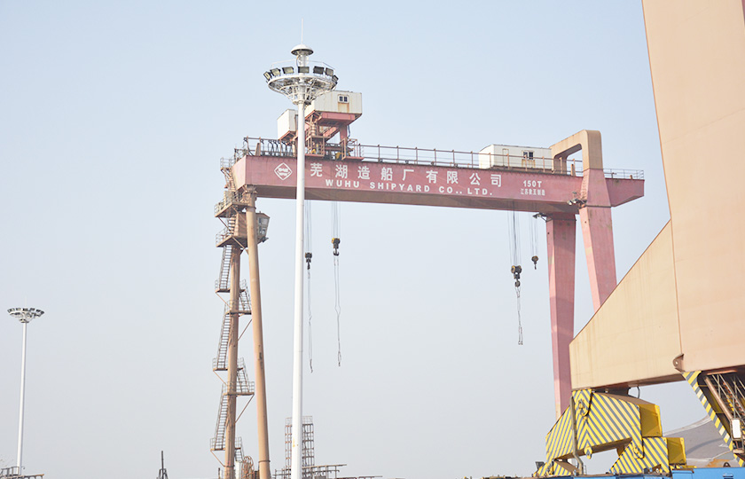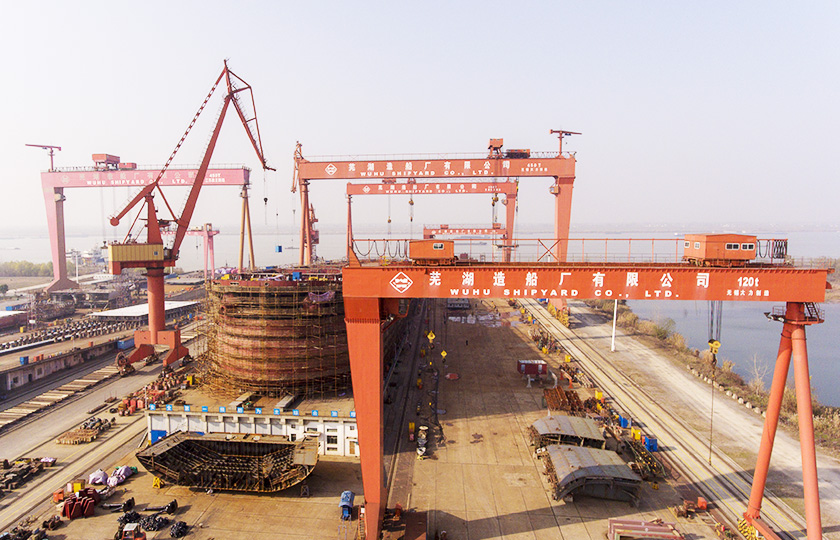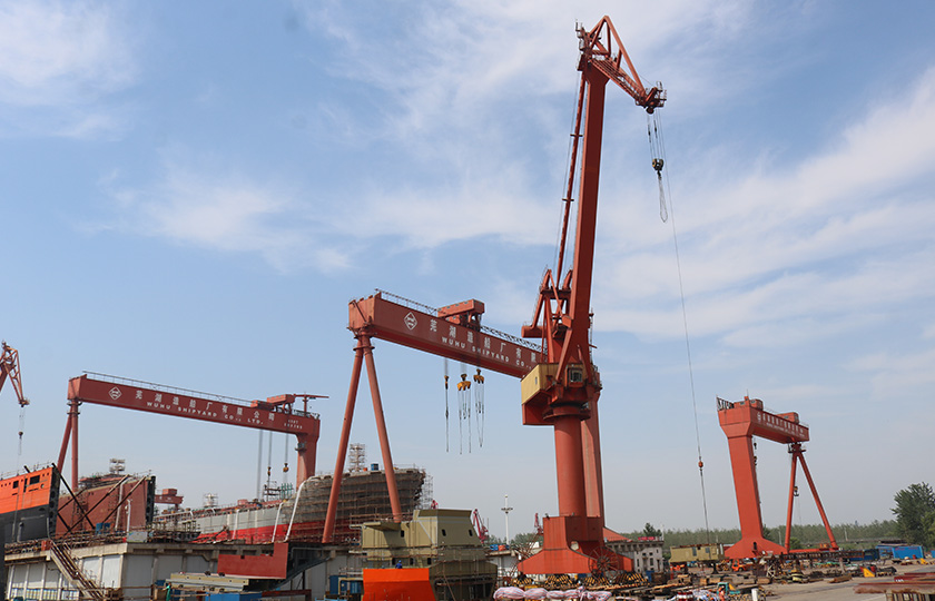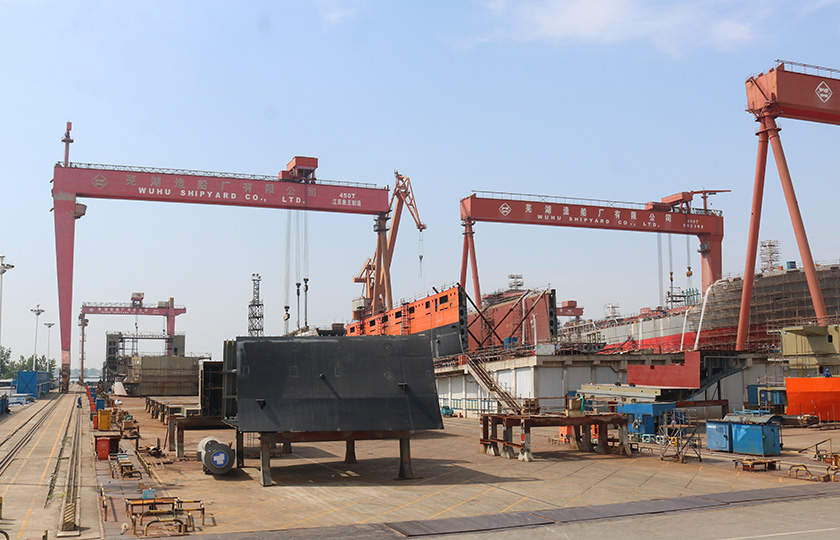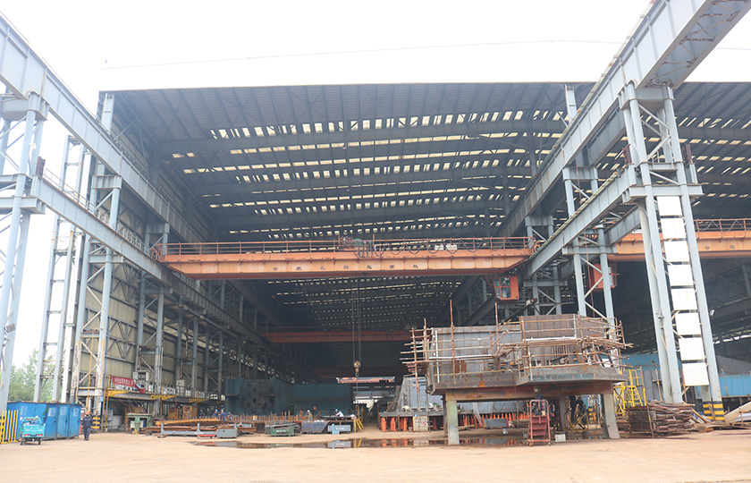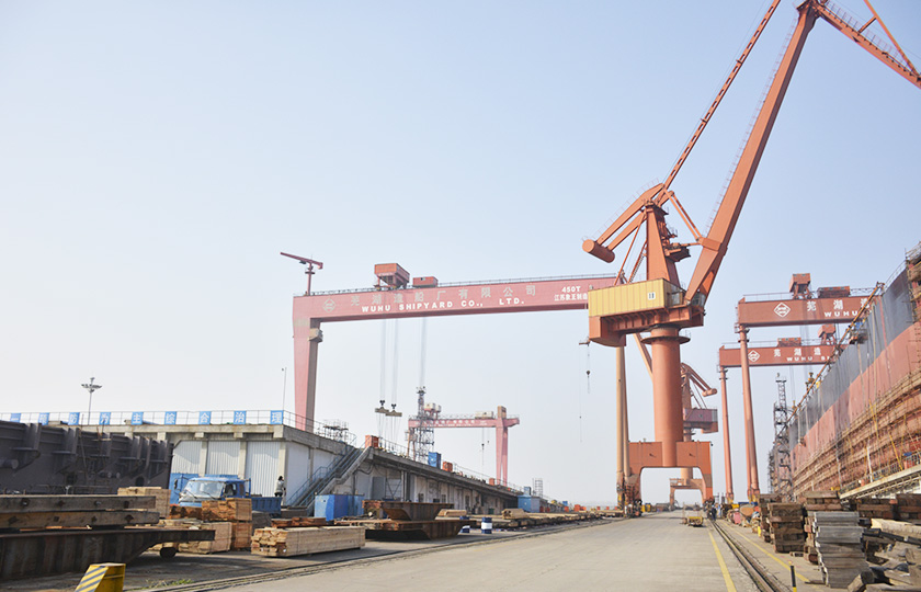 公司總投資達(dá)22億元,年造船載重噸位為80萬噸,一級I類造船企業(yè)。廠區(qū)總占地面積135.83萬平方米,岸線長度1355米,長達(dá)740米舾裝碼頭1座,擁有八萬噸級大型船臺兩座,擁有單臺起重能力達(dá)450t門吊3座,單臺起重能力32t塔吊3座。