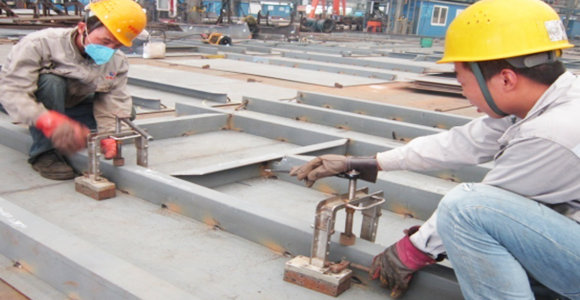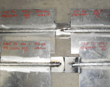 鋁合金是高速船的主要結(jié)構(gòu)材料,鋁合金可以設(shè)計(jì)出更合理的結(jié)構(gòu)形式,減輕重量,提高結(jié)構(gòu)強(qiáng)度。我公司自主研發(fā)的輕型自行門橋等產(chǎn)品均采用了7系高強(qiáng)度鋁合金,因此造船工藝迎來了重大的轉(zhuǎn)換期,選用合適的焊接方法和焊接工藝,有效控制鋁合金焊接變形及焊接接頭強(qiáng)度,公司工法科還為此研制了焊接氬氣保護(hù)裝置和焊接環(huán)境風(fēng)向控制箱等科技含量很高的工裝。我們在接頭設(shè)計(jì)、焊接工藝參數(shù)等方面進(jìn)行了大量的焊接試驗(yàn)。經(jīng)過一代一代的努力,積累豐富的數(shù)據(jù)和經(jīng)驗(yàn),外觀成型和理化試驗(yàn)后機(jī)械性均符合標(biāo)準(zhǔn),已編制出準(zhǔn)確的7系高強(qiáng)度鋁合金PWPS,形成正式的焊接試驗(yàn)報(bào)告(WPQR),并制定出具體的現(xiàn)場焊接工藝,將形成工藝標(biāo)準(zhǔn)。